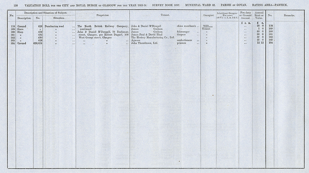 Glasgow Valuation Roll VR 1913-14, Ward 32, p138
