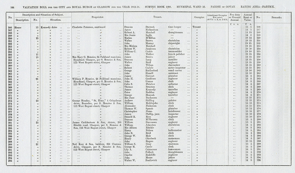 Glasgow Valuation Roll VR 1913-14, Ward 32, p144