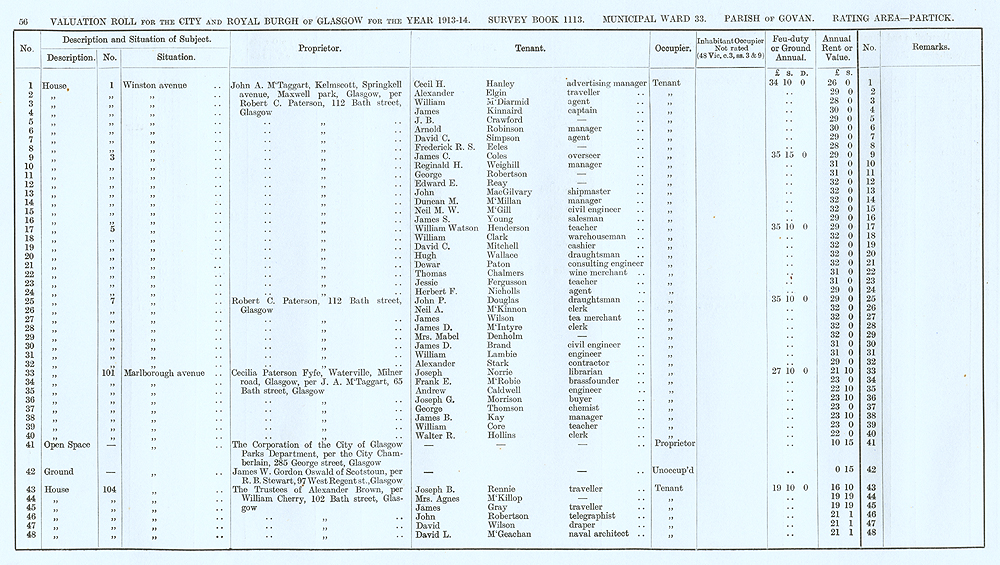 Glasgow Valuation Roll VR 1913-14, Ward 33, p056