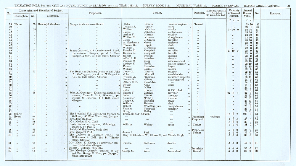 Glasgow Valuation Roll VR 1913-14, Ward 33, p061