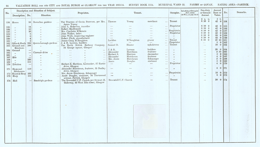 Glasgow Valuation Roll VR 1913-14, Ward 33, p064