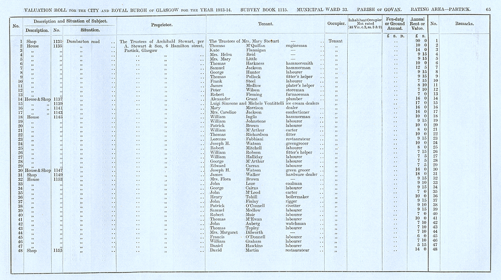 Glasgow Valuation Roll VR 1913-14, Ward 33, p065