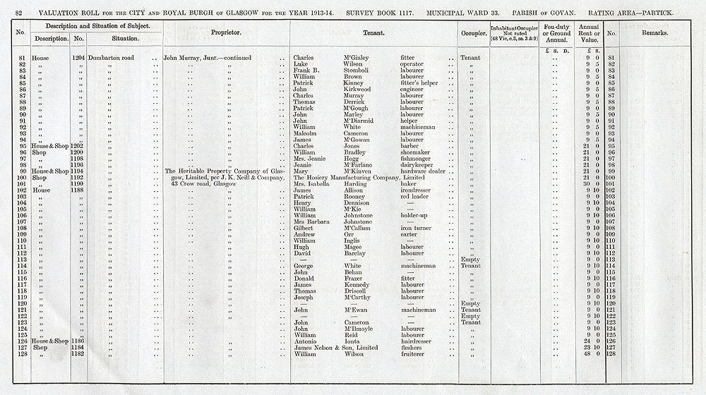 Glasgow Valuation Roll VR 1913-14, Ward 33, p082