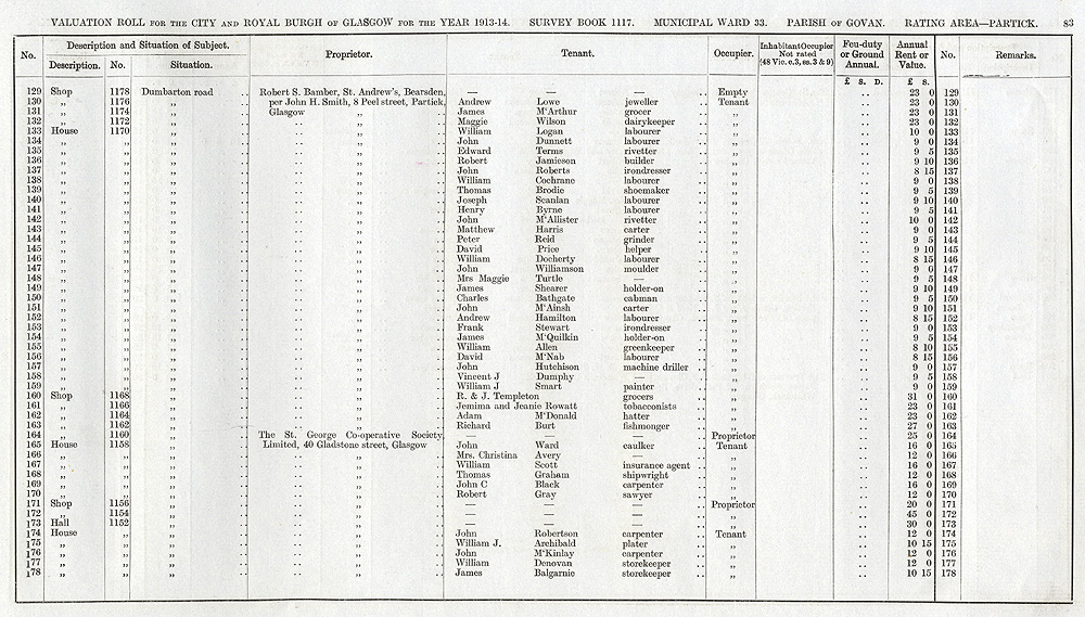 Glasgow Valuation Roll VR 1913-14, Ward 33, p083