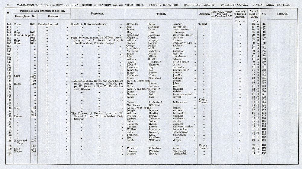 Glasgow Valuation Roll VR 1913-14, Ward 33, p088