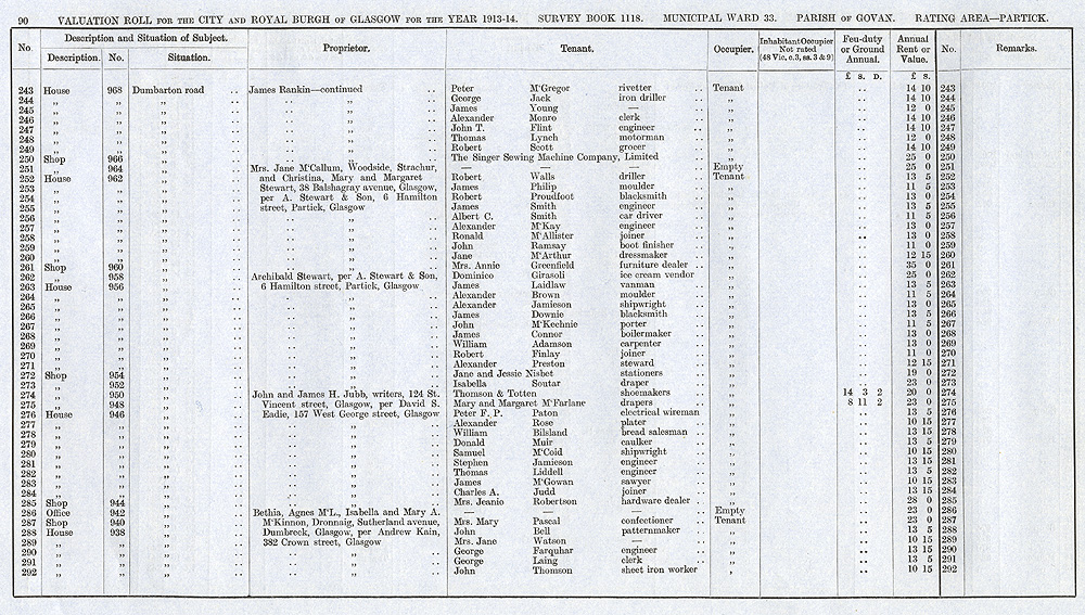 Glasgow Valuation Roll VR 1913-14, Ward 33, p090