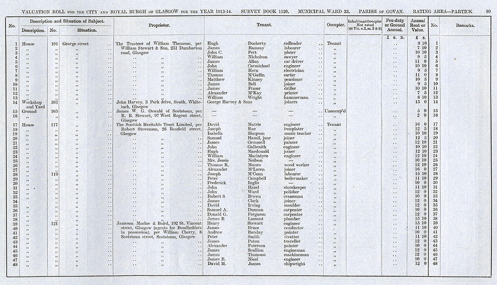 Glasgow Valuation Roll VR 1913-14, Ward 33, p099