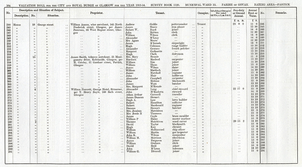 Glasgow Valuation Roll VR 1913-14, Ward 33, p104