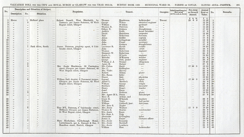 Glasgow Valuation Roll VR 1913-14, Ward 33, p105