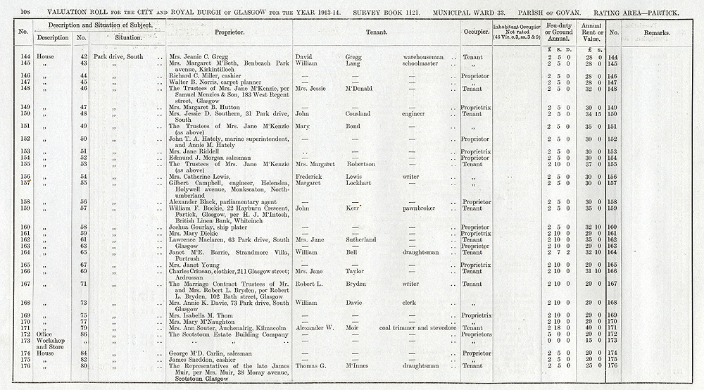 Glasgow Valuation Roll VR 1913-14, Ward 33, p108