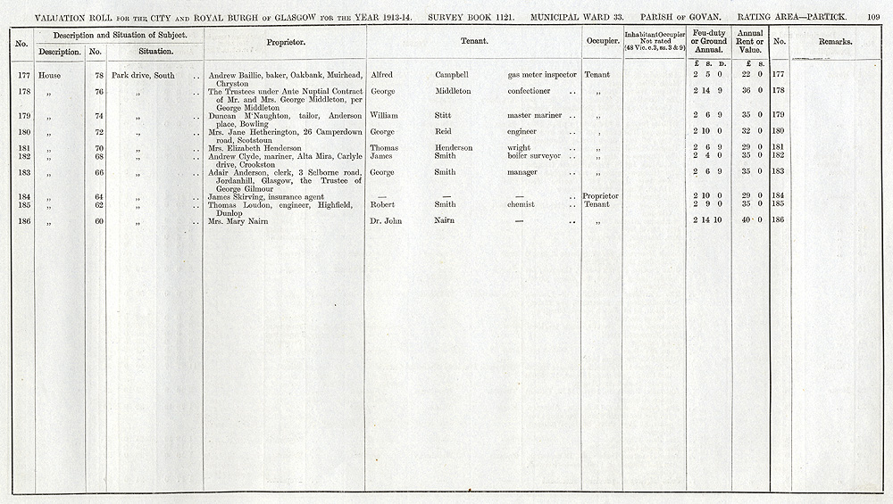 Glasgow Valuation Roll VR 1913-14, Ward 33, p109