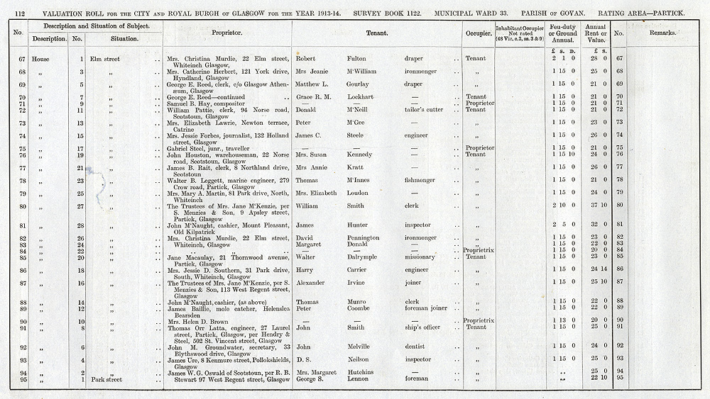 Glasgow Valuation Roll VR 1913-14, Ward 33, p112