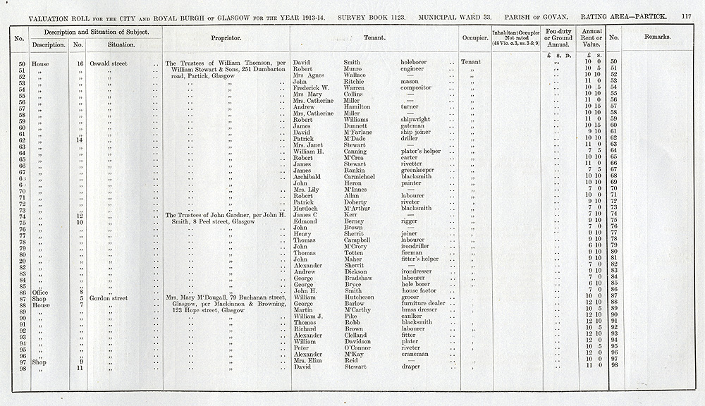 Glasgow Valuation Roll VR 1913-14, Ward 33, p117