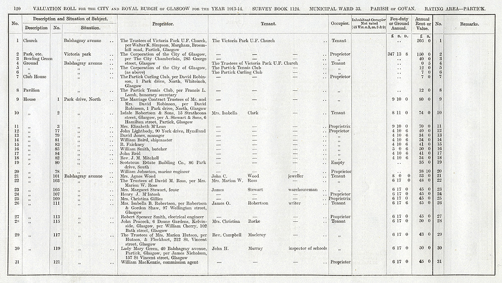 Glasgow Valuation Roll VR 1913-14, Ward 33, p120