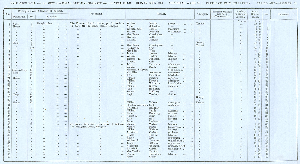 Glasgow Valuation Roll VR 1913-14, Ward 34, p071