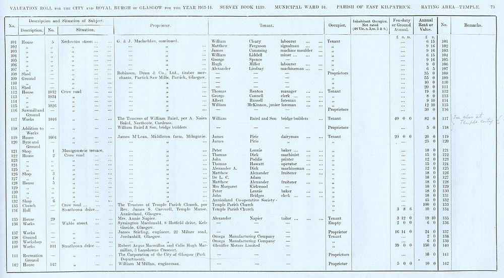 Glasgow Valuation Roll VR 1913-14, Ward 34, p073