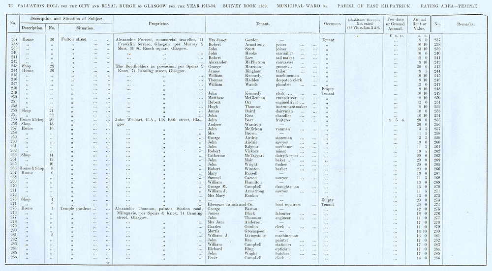 Glasgow Valuation Roll VR 1913-14, Ward 34, p076