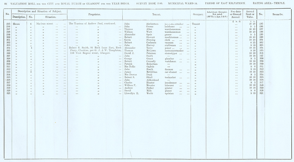 Glasgow Valuation Roll VR 1913-14, Ward 34, p084