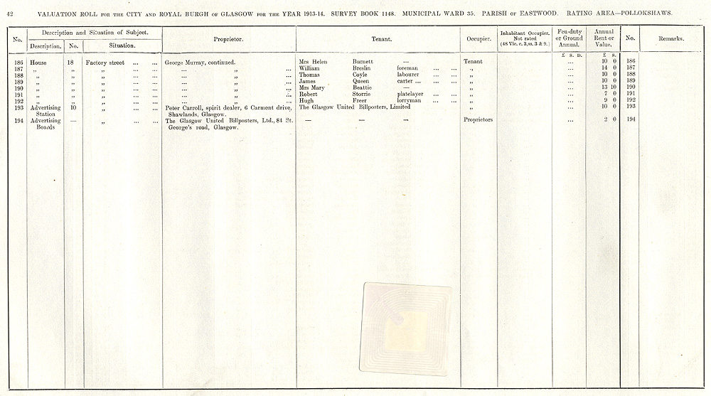 Glasgow Valuation Roll VR 1913-14, Ward 35, p042
