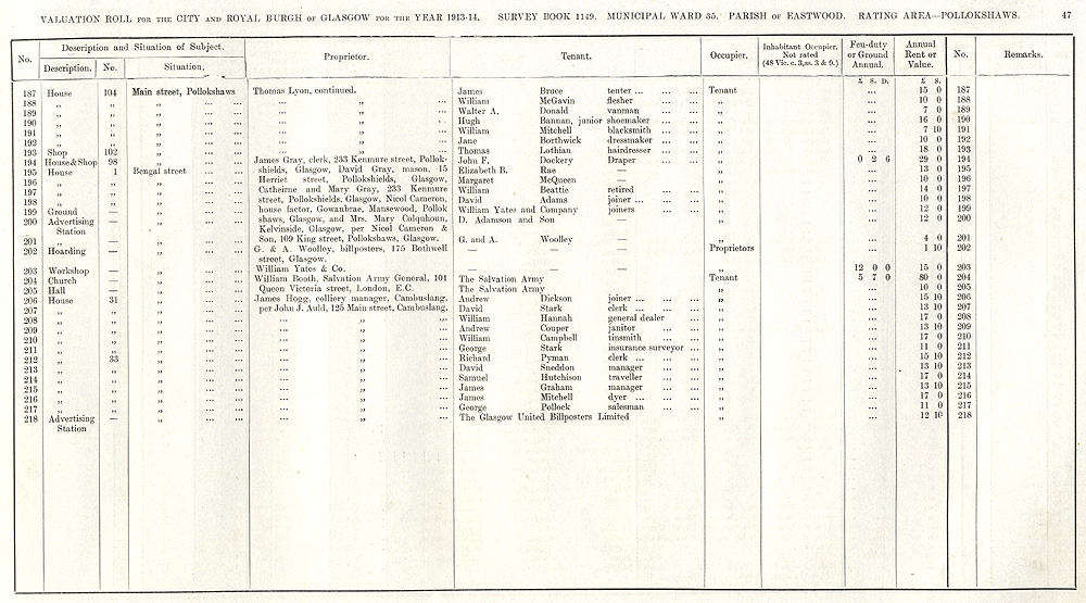 Glasgow City Archives, City Assessor's Department, Valuation Rolls