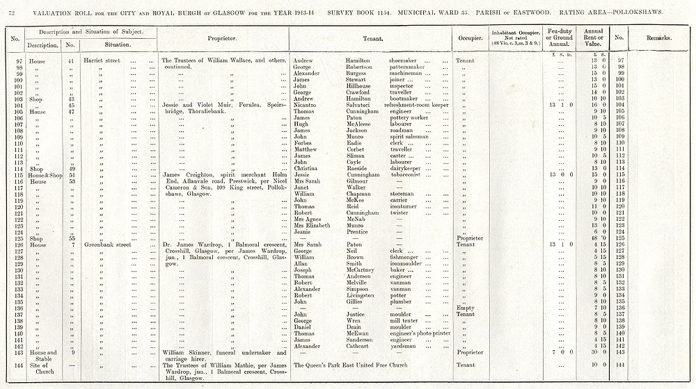 Glasgow Valuation Roll VR 1913-14, Ward 35, p072