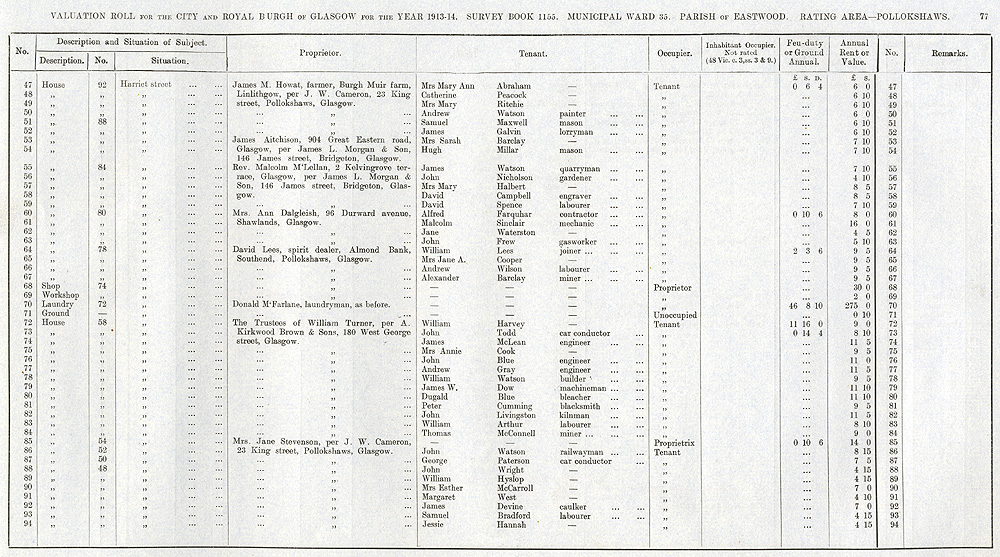 Glasgow Valuation Roll VR 1913-14, Ward 35, p077