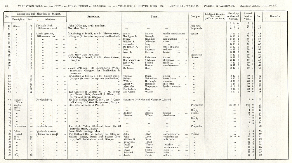 Glasgow Valuation Roll VR 1913-14, Ward 35, p084