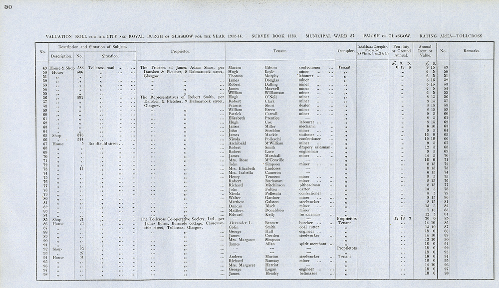 Glasgow Valuation Roll VR 1913-14, Ward 37, p030