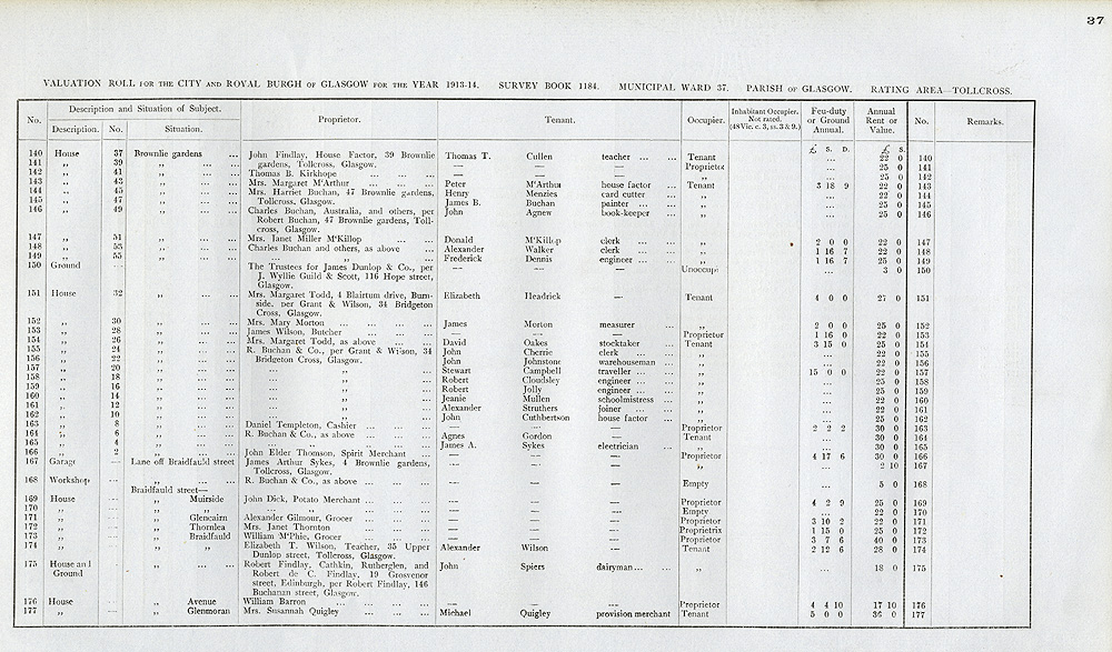 Glasgow Valuation Roll VR 1913-14, Ward 37, p037